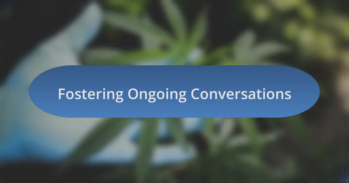 Fostering ongoing conversations about cannabis requires persistence and genuine interest. I remember attending a quarterly community forum where cannabis was back on the agenda. Instead of rushing through the topics, we paused to reflect on how new laws had impacted local dispensaries and patients alike. This kind of reflective dialogue nurtured a collective curiosity, sparking conversations that continued well beyond the event. Isn’t it interesting how one discussion can lead to multiple follow-ups?